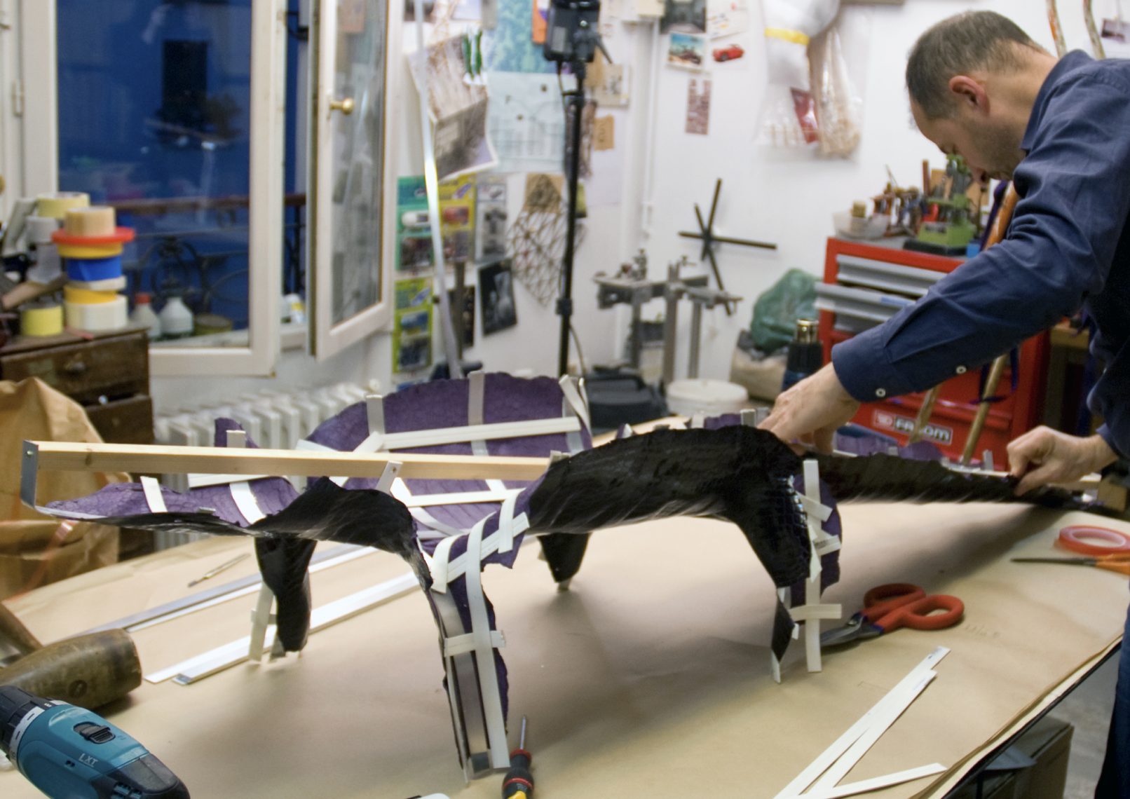 Made without any assembly nor cuts, this object is about saving ressources as well ‘shape memory’. When leather takes its shape back, it acquires the personality and the dynamics of an animal.