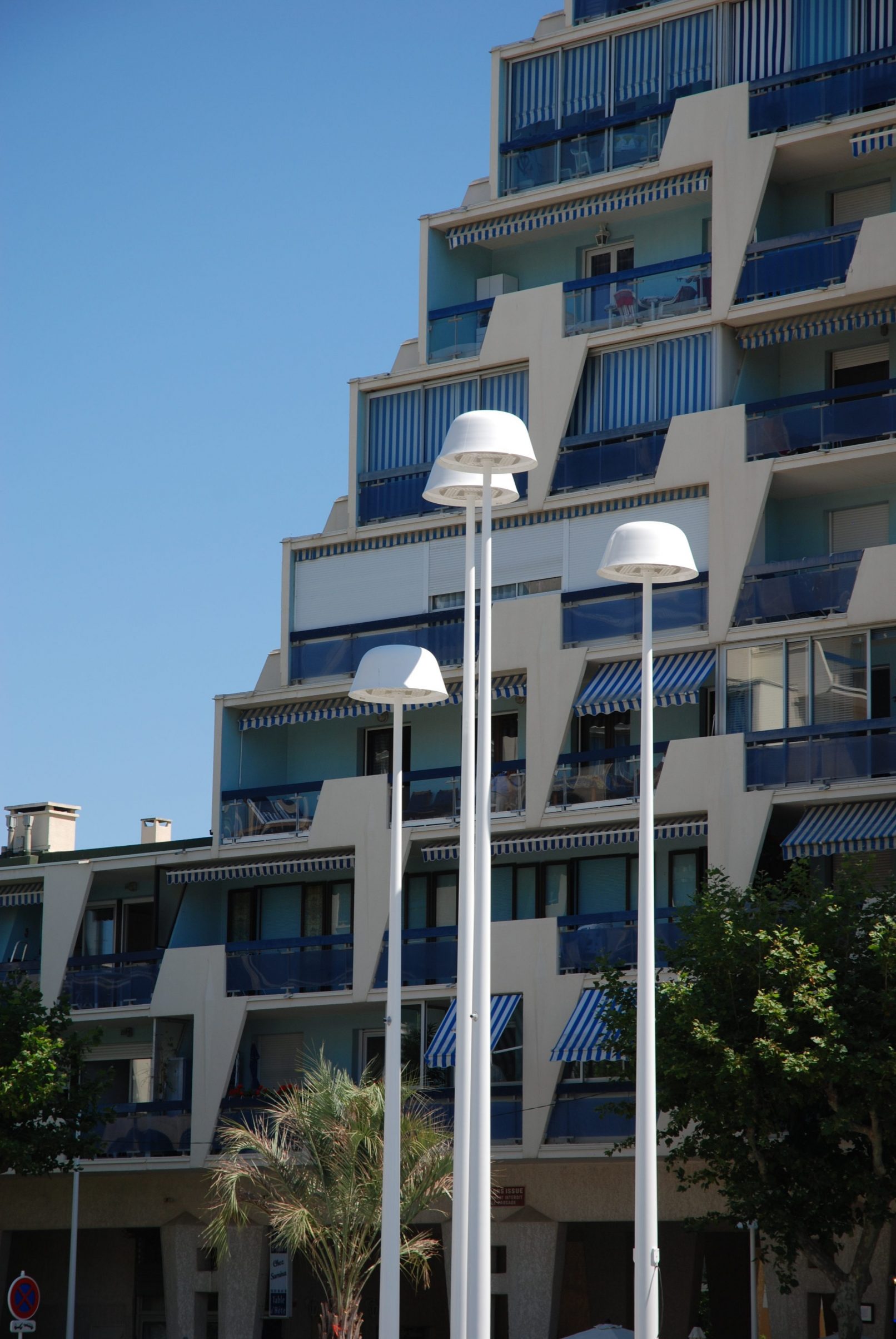 This collection is part of a redevelopment project of the avenue de l’Europe, in La Grande Motte. The collection is composed with outdoor chairs, fountains, poles, pavements and street lamps.